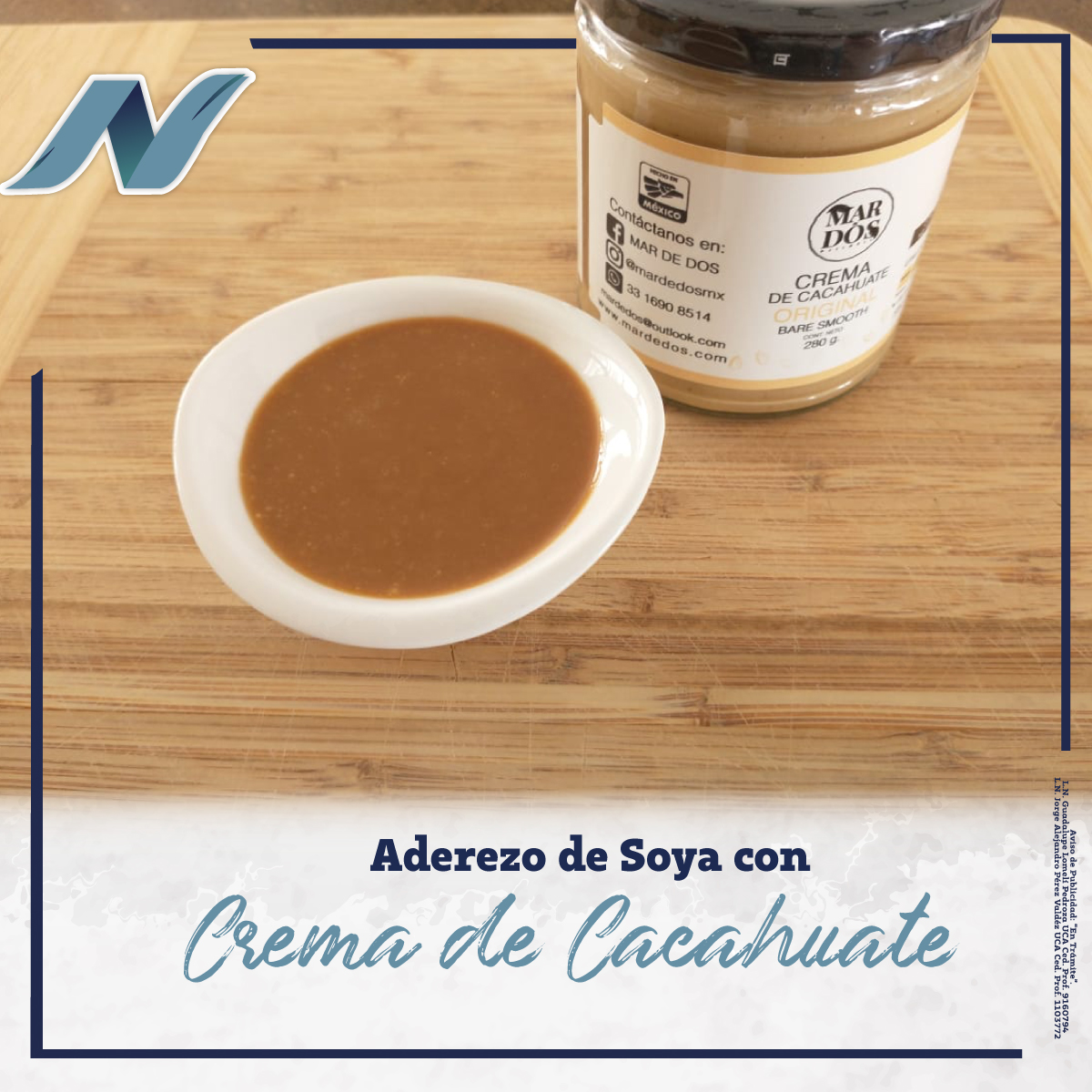 Aderezo de soya con crema de cacahuate 100% natural